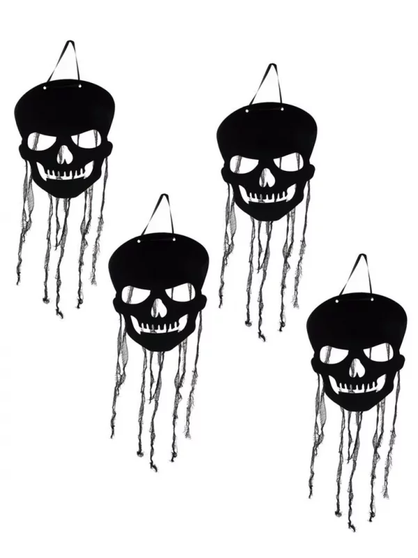 Fabriquées en PVC et polyester, ces suspensions de crâne sont légères et durables. Leur couleur noire et leur thème Crâne, Halloween, décoration en font un choix idéal pour les fêtes d’Halloween ou pour une soirée pirate.