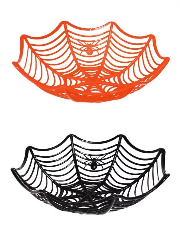 Vous voulez offrir des bonbons aux enfants qui viennent frapper à votre porte pour Halloween ? Alors cette corbeille à bonbons en forme de toile d’araignée avec une petite araignée est faite pour vous ! Cette corbeille ajourée est en PVC et existe en deux couleurs : orange ou noir.