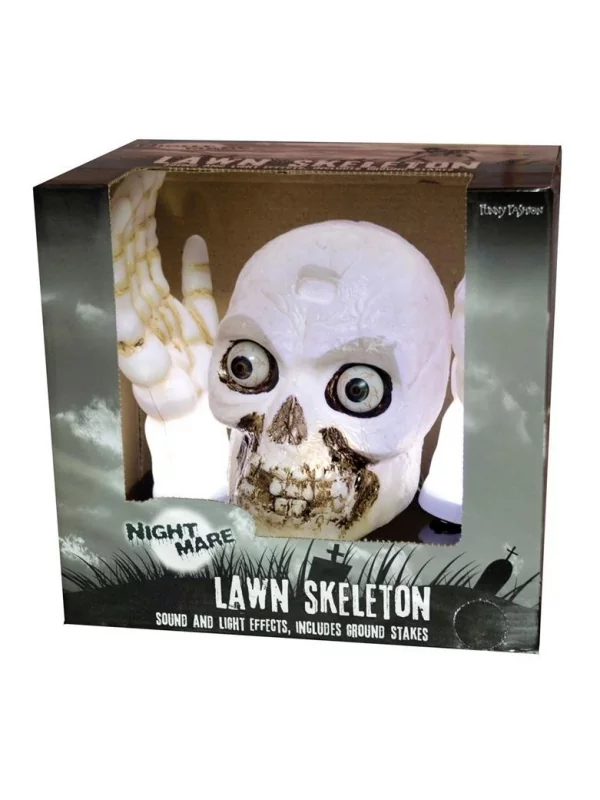 Avec les mains qui l’accompagnent, ce crâne donne l’impression qu’un corps décomposé est enterré dans votre jardin, ce qui ajoute une touche de réalisme à votre décoration d’Halloween.