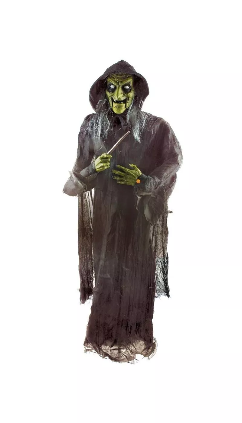 Halloween : la sorcière animée en PVC de 180 cm pour une ambiance terrifiante