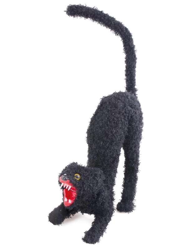 Avec sa gueule ouverte, ses crocs acérés et son regard perçant, ce chat noir en polystyrène recouvert de polyester apportera une touche d’horreur à votre décoration d’Halloween.