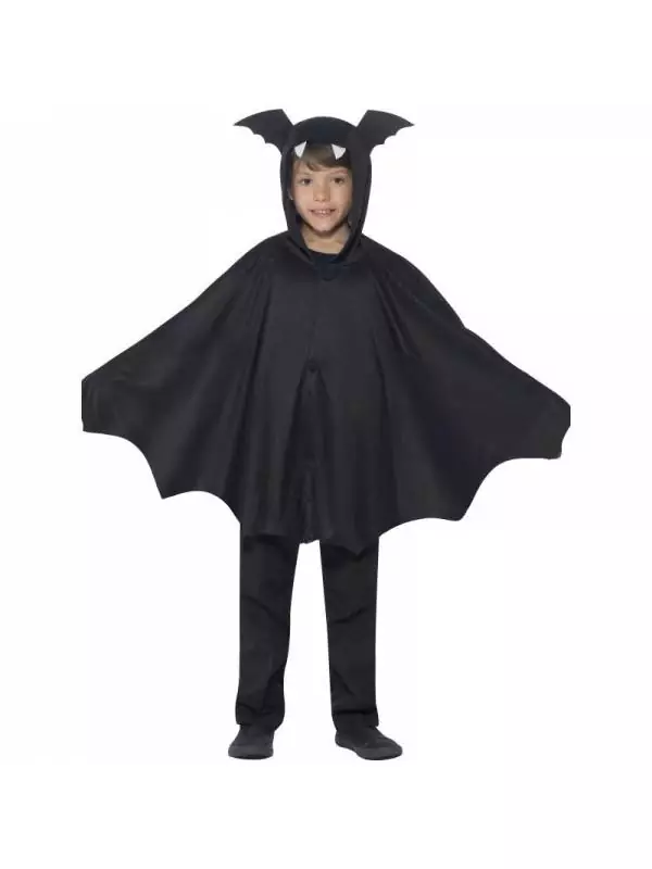 C’est une cape de coloration noire qui recouvre entièrement la partie haute du petit ainsi que sa tête grâce à la capuche dotée d’oreilles et de dents. On peut s’en servir lors d’une fête de l’école, durant une festivité nécessitant un costume déguisé ou à Halloween. Il faut prévoir un pantalon de coloration noire pour le bas afin de parfaire le déguisement.