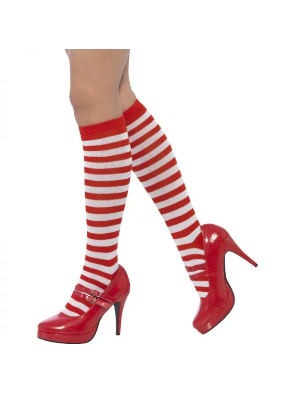 Chaussettes hautes rayées rouge et blanc