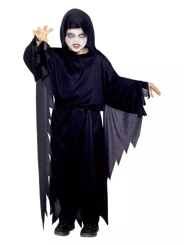 Déguisement enfant fantôme noir avec robe à capuche et ceinture!
