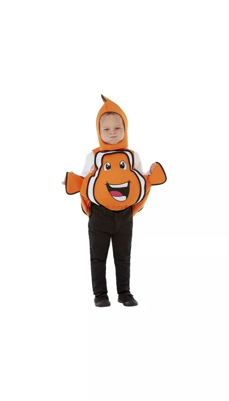 Ce déguisement de poisson-clown pour enfant de chez Smiffys est facile à porter. Il suffit de mettre le haut et le bonnet orange qui complète la panoplie. Le costume convient à tous les petits de 4 ans et moins.