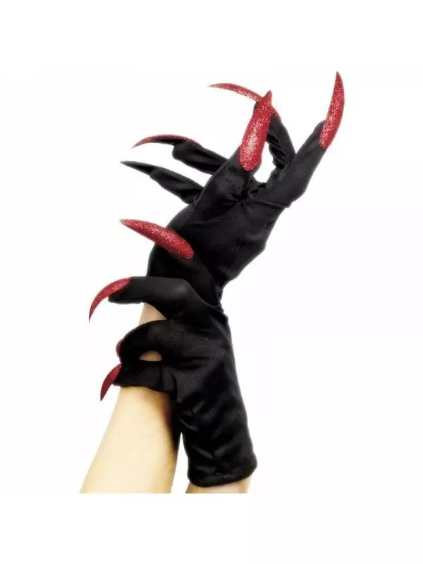 Les gants sont noirs et ils sont terminés par de longs ongles rouges pailletés. En dehors de son usage pour faire peur, les gants de monstre peuvent aussi servir pour compléter un costume sexy.