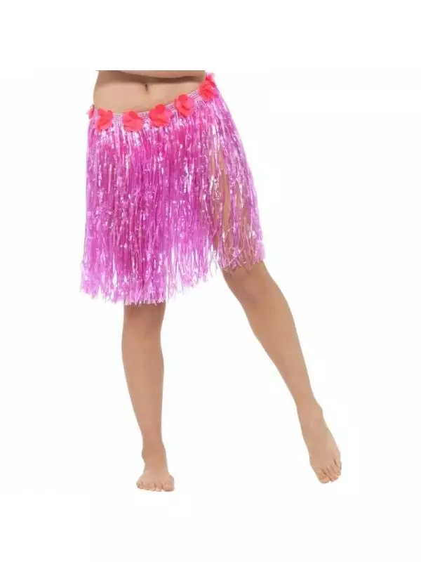 Jupe hawaïenne hula rose fluo avec fleurs pour un look Hawaïen réussi !