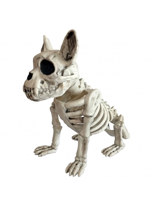 Nouveauté Halloween, Squelette chien 28 cm assis sur son derrière avec des oreilles bien droites.