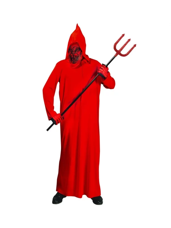 Pas besoin de maquillage, la panoplie est complète pour ce diable grâce au masque intégral et la robe longue à capuche.