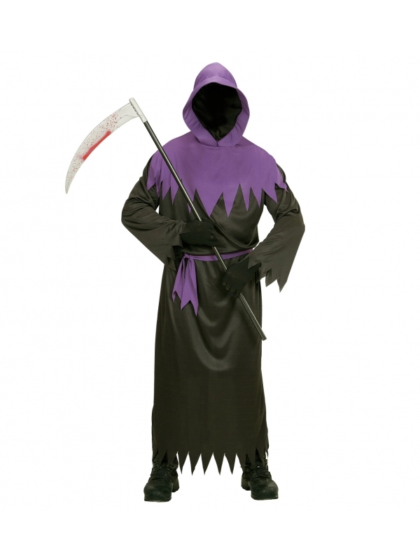Déguisement Faucheuse homme noir et violet avec masque intégral