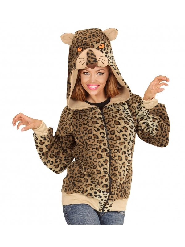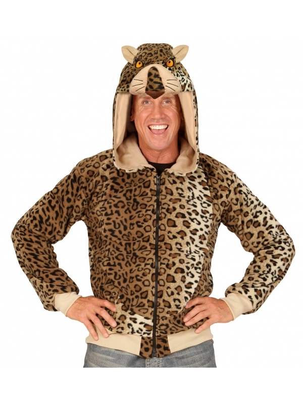Déguisement veste Polaire à capuche tête de Léopard pour adulte