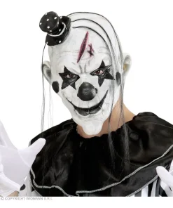 Semez la terreur avec ce masque de clown tueur avec cheveux et chapeau. Une apparence terrifiante sans passer par la case maquillage.